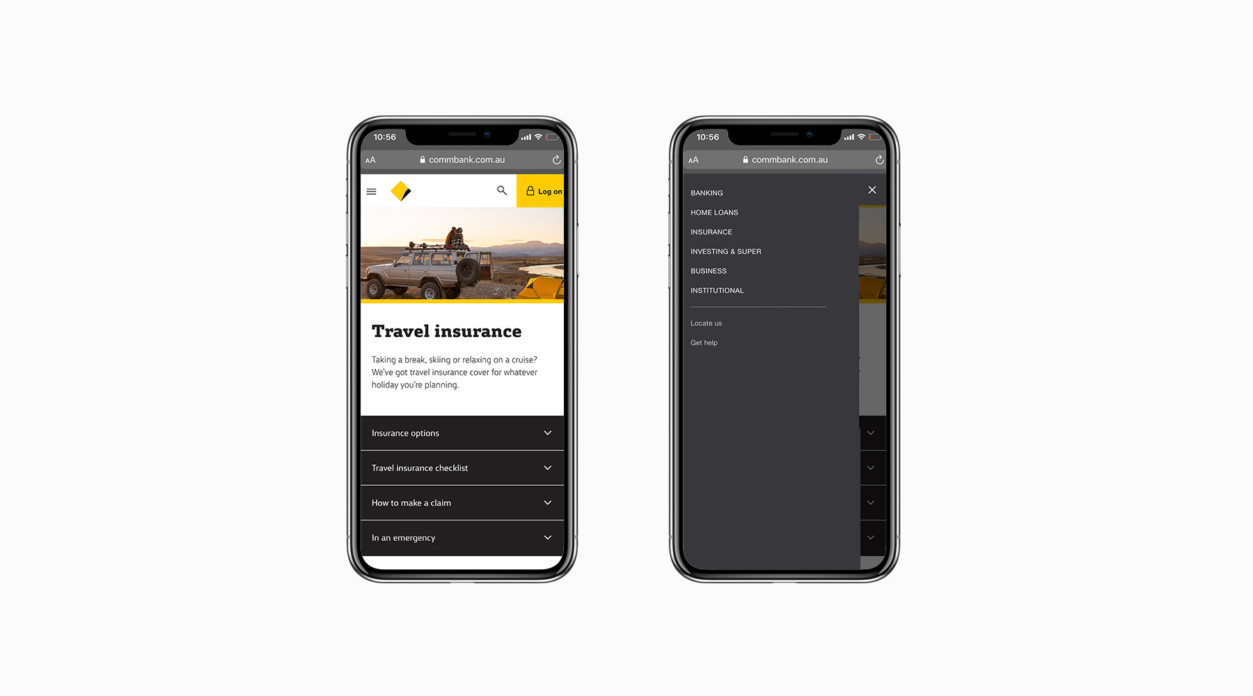 SUMMARY:One of the biggest banks in Australia now features a travel insurance product. We built the site and rolled it out!VISIT LIVE: www.commbank.com.au |